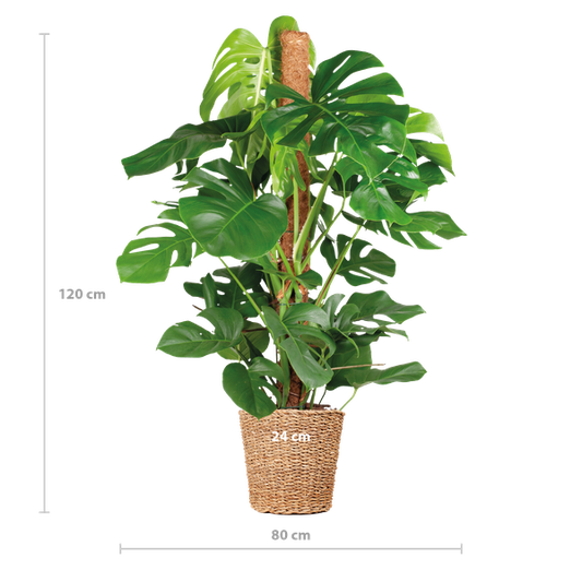 Monstera Deliciosa XL – Hoogte 120 cm – Potmaat Ø24 cm – Inclusief Torun Mand – Vers van de Kweker